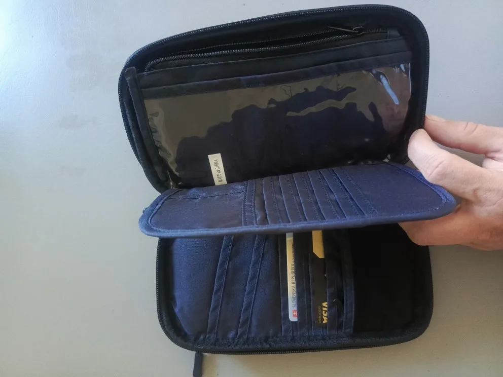 Cette pochette de voyage est en polyester imperméable est aussi un organisateur de billets porte-monnaie pour voyage. La technologie de blocage RFID protège efficacement votre carte de paiement.